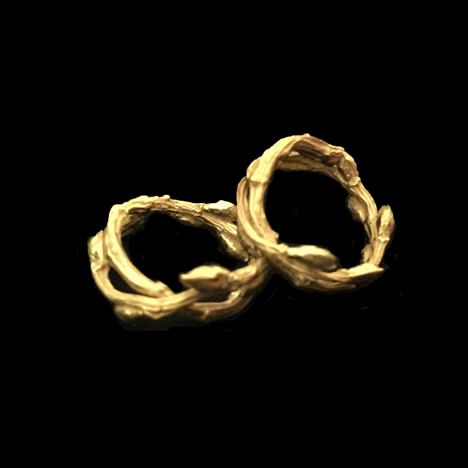 A single branch cast in 18K gold and formed to size.