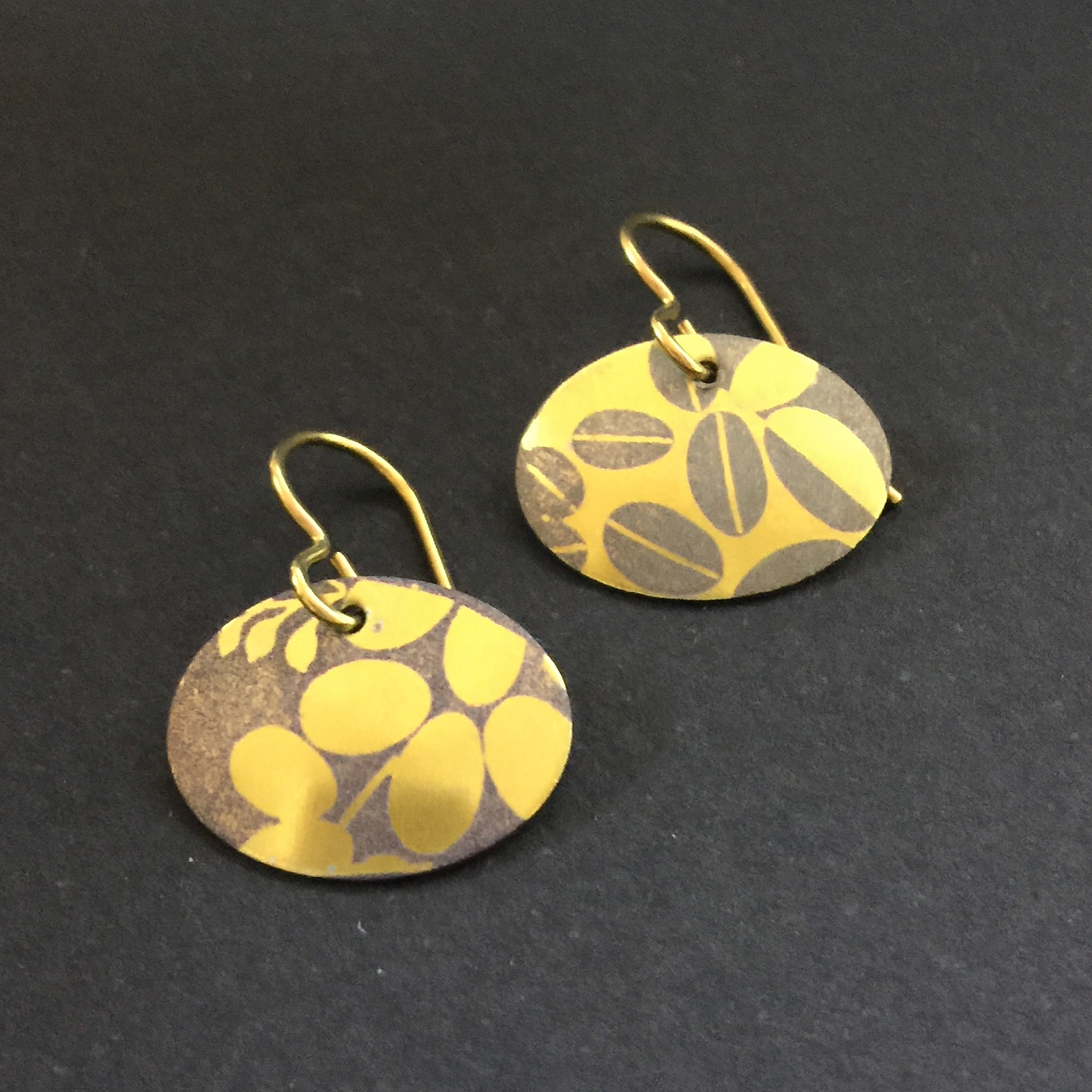 Etched oval leaf pattern earrings.